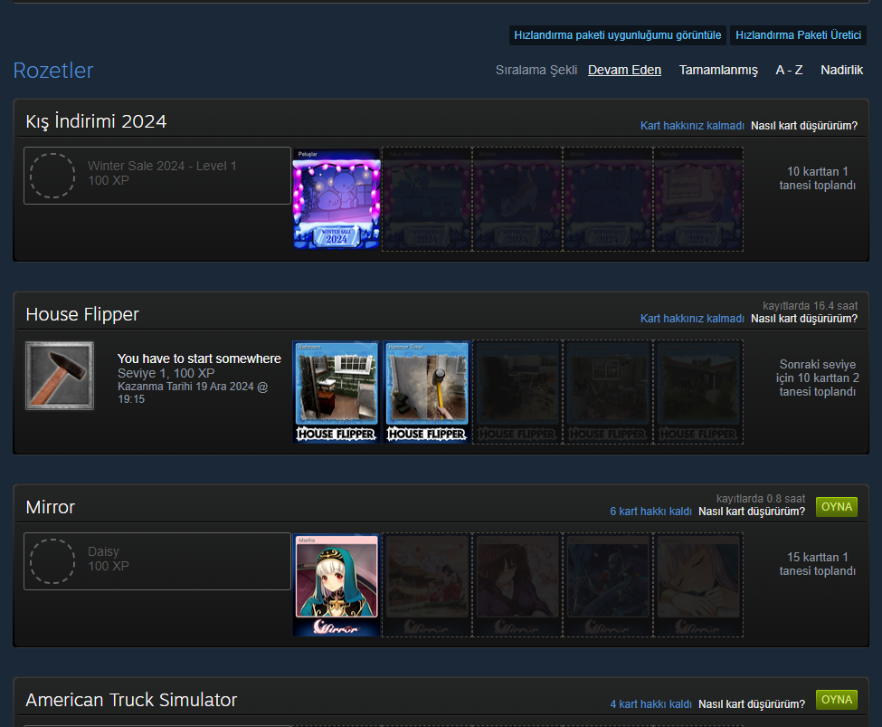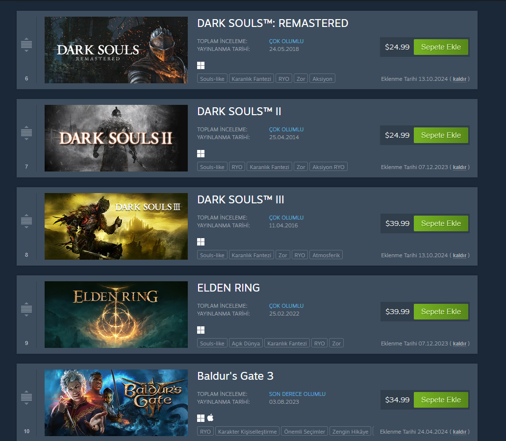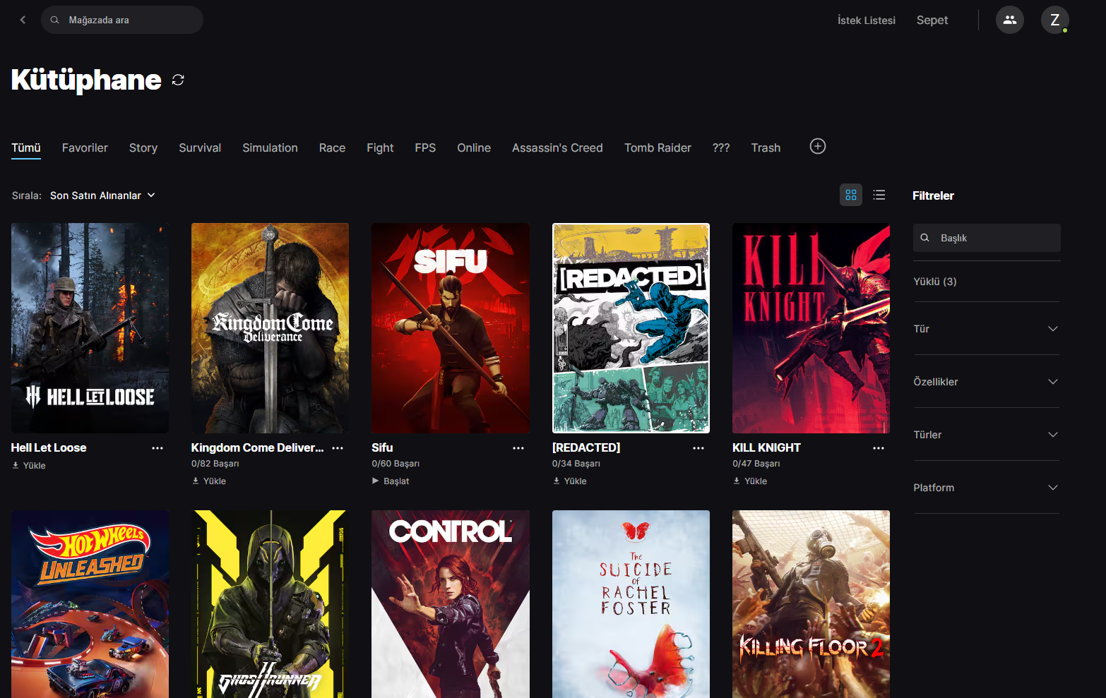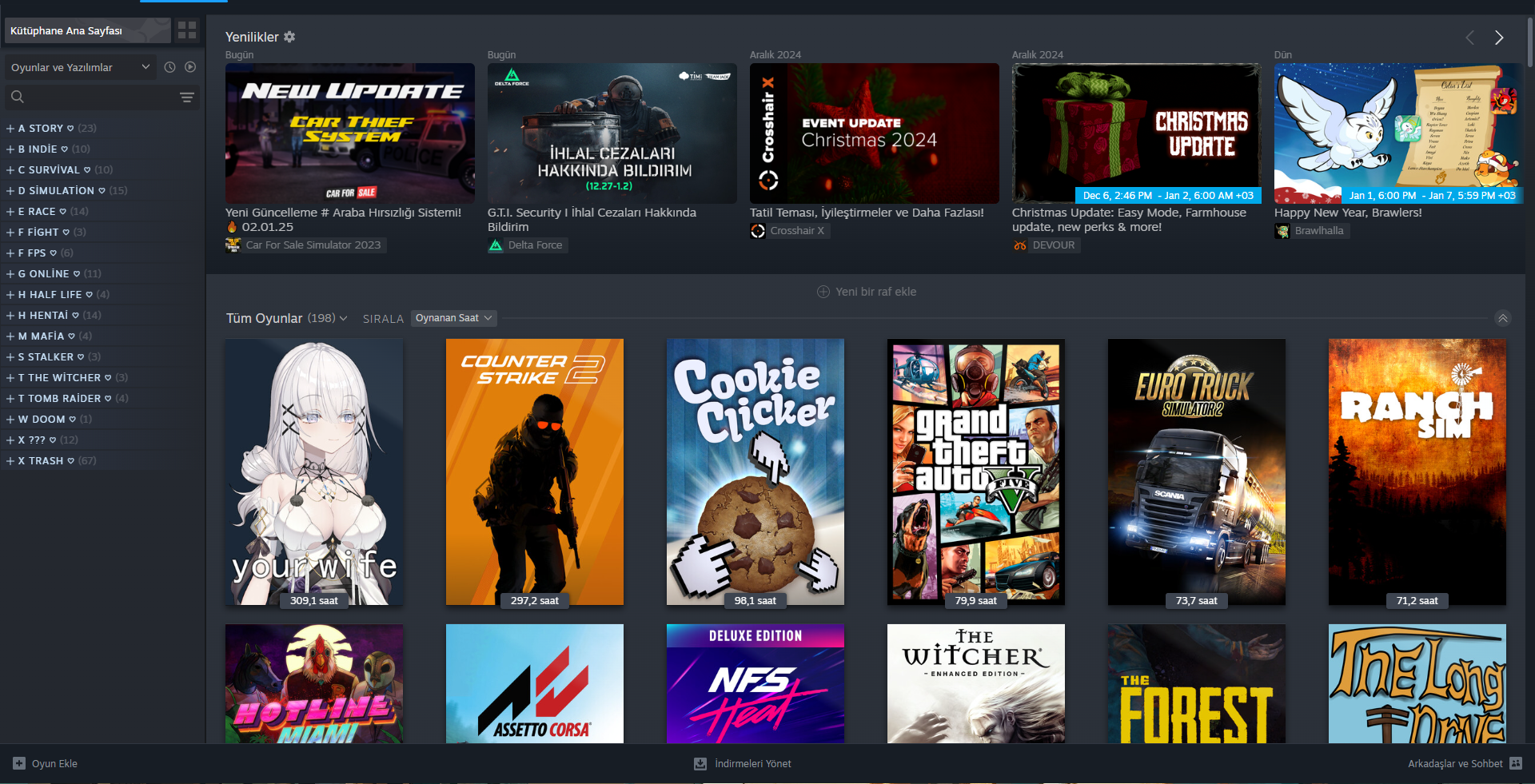 Steam'deki solda liste olduğu gibi burada yok ondan biraz daha zor oluyor benim için ve koleksiyon oluşturma sınırı var toplam 11 tane Steam'deki gibi düzenli olamıyorsunuz