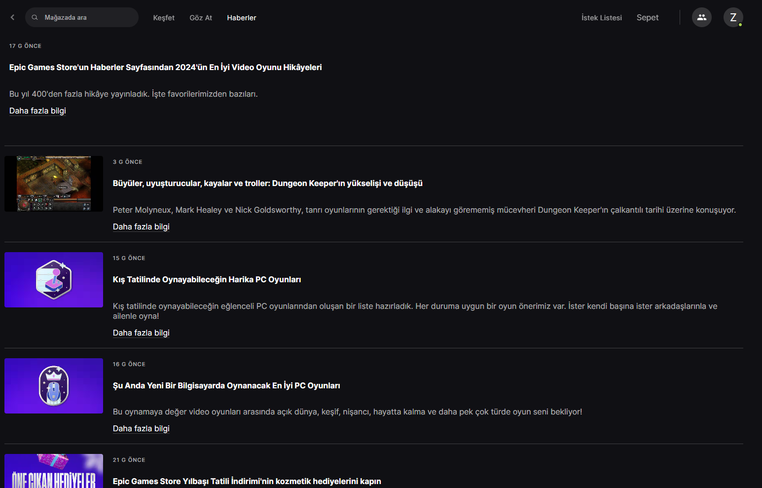 Epic Games haberlerini ilk defa açtım genelde indirim dönemi gibi şeyler var oyun güncellemeleri vs yok zaten pek kullandığım bir yer değil benim için önemsiz
