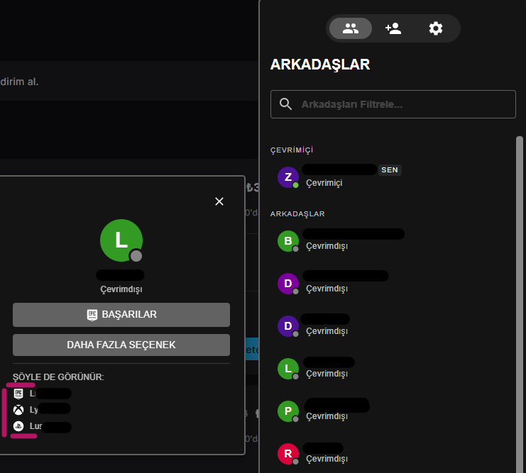 herhangi bir mesajlaşma arama özelliği yok tek iyi yanı Steam, Xbox benzeri uygulamaları eklediyse buradan ismine bakabilmemiz
