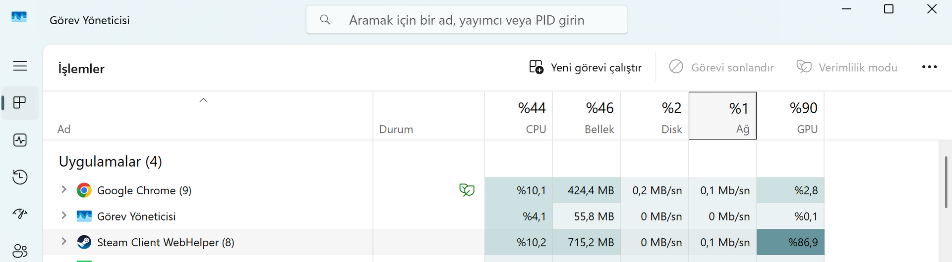 Merhaba, Steam üzerinden sesli sohbetteyken bir anda dahili GPU biriminin (Intel HD Graphics 620) %99 seviyelerine çıktığını gördüm. Durum aşağıdaki gibi,