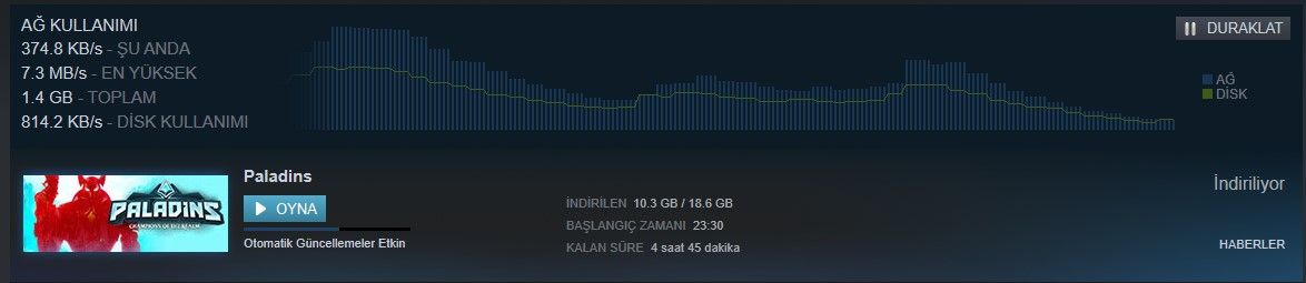 Merhabalar, resimde de gördüğünüz gibi Steam üzerinden indirme yaparken hızım düşüyor. Speedtest üzerinden 75Mbit download. Normal değerimi alıyorum ancak Steam üzerinden indirme yaparken hızım inanılmaz derecede düşüyor. NetSpeed kullanıyorum ve destek talebi oluşturdum ancak daha önce de oluşturmuştum çözemediler. Üstünde duracağım, orası ayrı ancak belki farklı bir çözüm yolu, bilen vardır diye konu açıyorum.