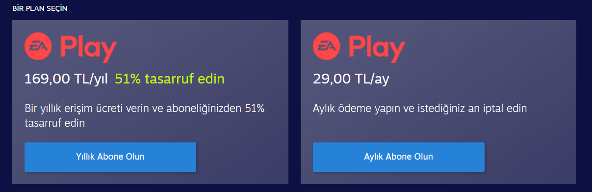 Steam'de alınan oyunlar sonsuza kadar sizin olur ancak EA Play gibi bir sistem alırsanız bu aylıktır. Alırken size belirtir ne aldığınızı.