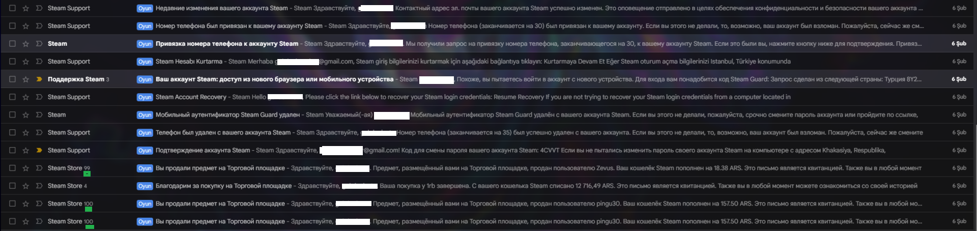 Neyse ki, Steam Guard değiştirdikten sonra mailimde Rusça dilinde de olsa translate ile bakarak, hesabı kitle seçeneğini gördüm ve ona tıkladım. Ama bunu yapana kadar, hesapta yüzlerce market alım ve satış işlemi gerçekleşti. Çok ciddi miktarda para kaybettim, dolandırıldım. Hesabı geri almam iki günümü aldı.