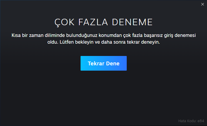 Parolayı değiştirdim Steam'i silip tekrar kurdum hala aynı hata.