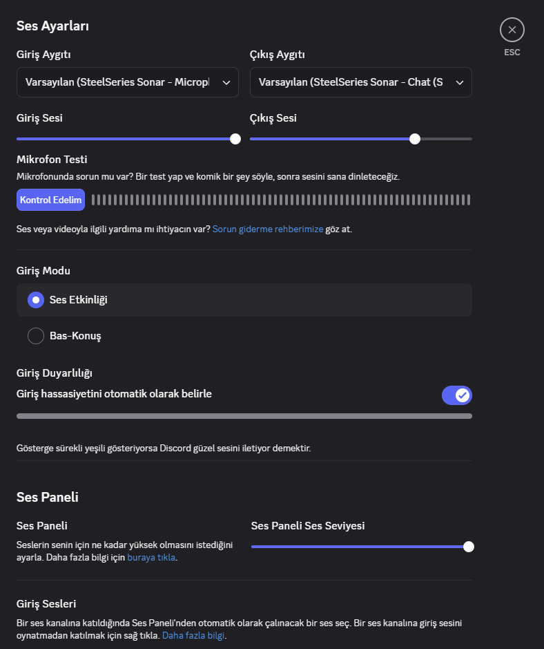 Evet yazılımını kullanıyorum. Oradan da ayarları yaptım. Sanırım problem Discord'da. Yaptığınız ayarları SS'leyip atar mısınız hocam.