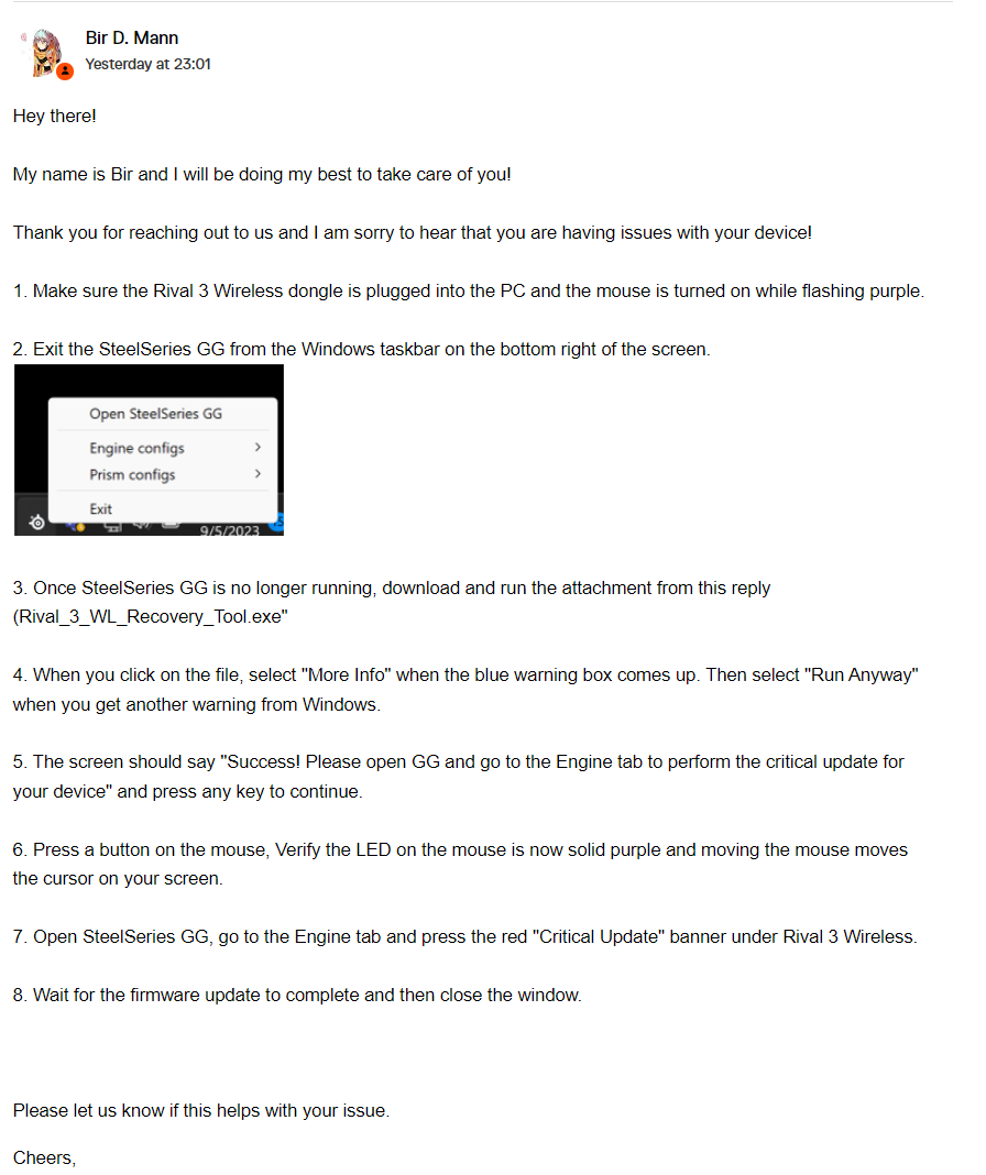 SteelSeries destek ekibine bende konu açtım.Selam şimdi oturdum PC başına dosyayı nereden indireceğim? Çözüm için yardımcı olursan sevinirim.