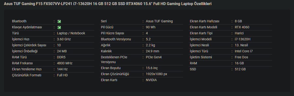 Asus Tuf Gaming f15 muadili değil öncelikle onu belirtmeliyim. Fiyatının düşük olması ile birlikte ekran yenileme hızı daha düşük. Muadili olamayacağını bu şekilde savunabilirsiniz.