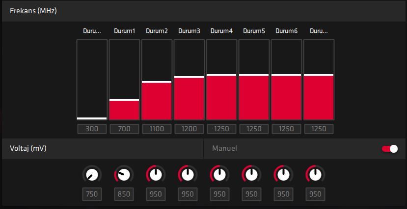 Önce kartın Stock frekansta stabil çalışmasını sağlayan en düşük voltajı bulman lazım, ben frekans düşürmeden 1.150'den 0.987'e kadar düşürdüm, daha da düştüğümde stabilite bozuldu ve çekirdek hızı sorunu hala çözülmemişti, çözmek için -50 MHz ile 0.950 voltaj verince hem stabiliteyi hem çekirdek saat hızı düşme olayını çözdüm, karta her frekans voltaj atayışında kontrolü en doğru şekilde yapman için OCCT yüklemen lazım ve 5 dakika boyunca çalıştırman lazım, 5 dakika içinde hata verdiyse stabilite sorunu vardır, 5 dakika sonrasında vermediyse hiç vermez, böyle böyle deneye deneye bulucan, ayrıca aşşağıda kırmızı çizili yeri bendeki gibi yap.