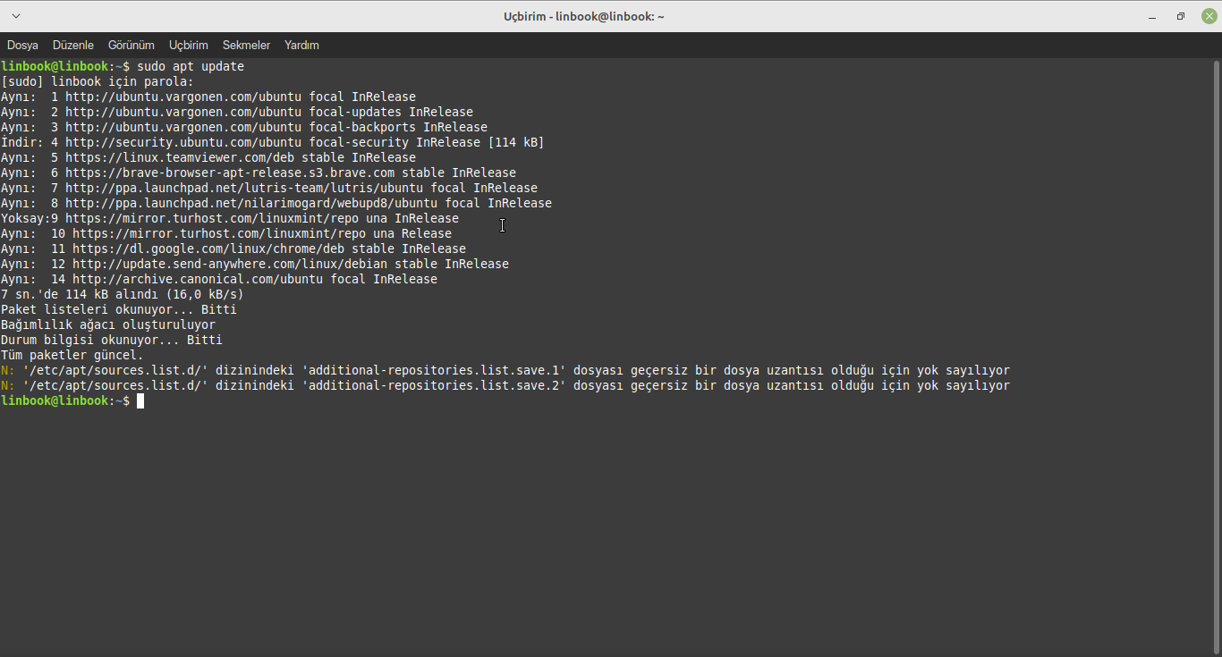 Satırı aramama gerek kalmadı sadece o vardı zaten. Sildim, kaydettim ve tekrar sudo apt update yazdım. Sonuç bu:
