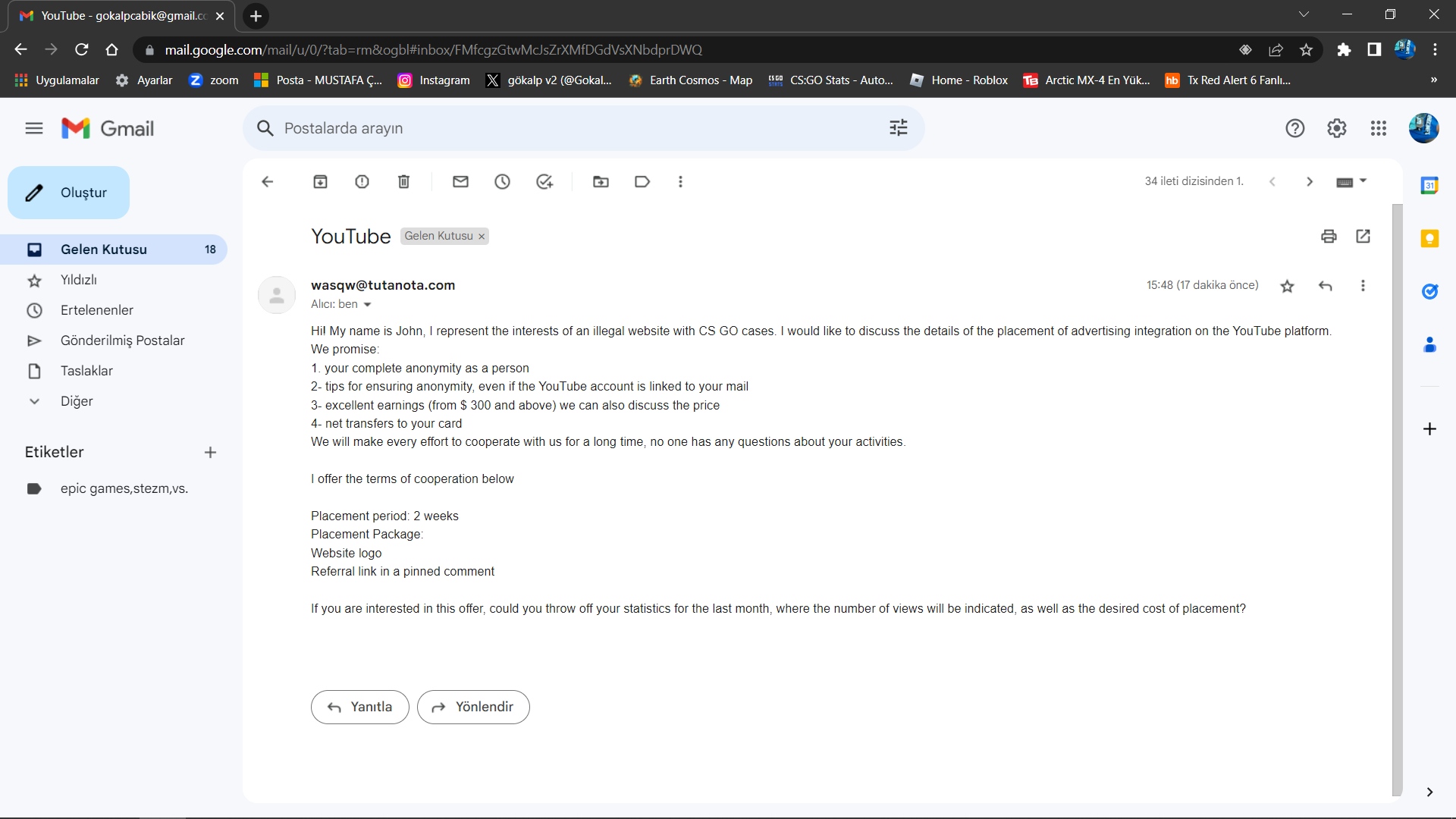 Görseldeki gibi bir mail geldi. Ben ne olduğunu anlamadım, gönderenin maili de biraz değişik. Sizce ne olabilir?