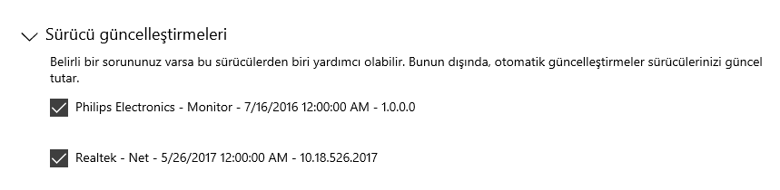 Sürücü güncelleştirmeleri yapılmalı mı?
