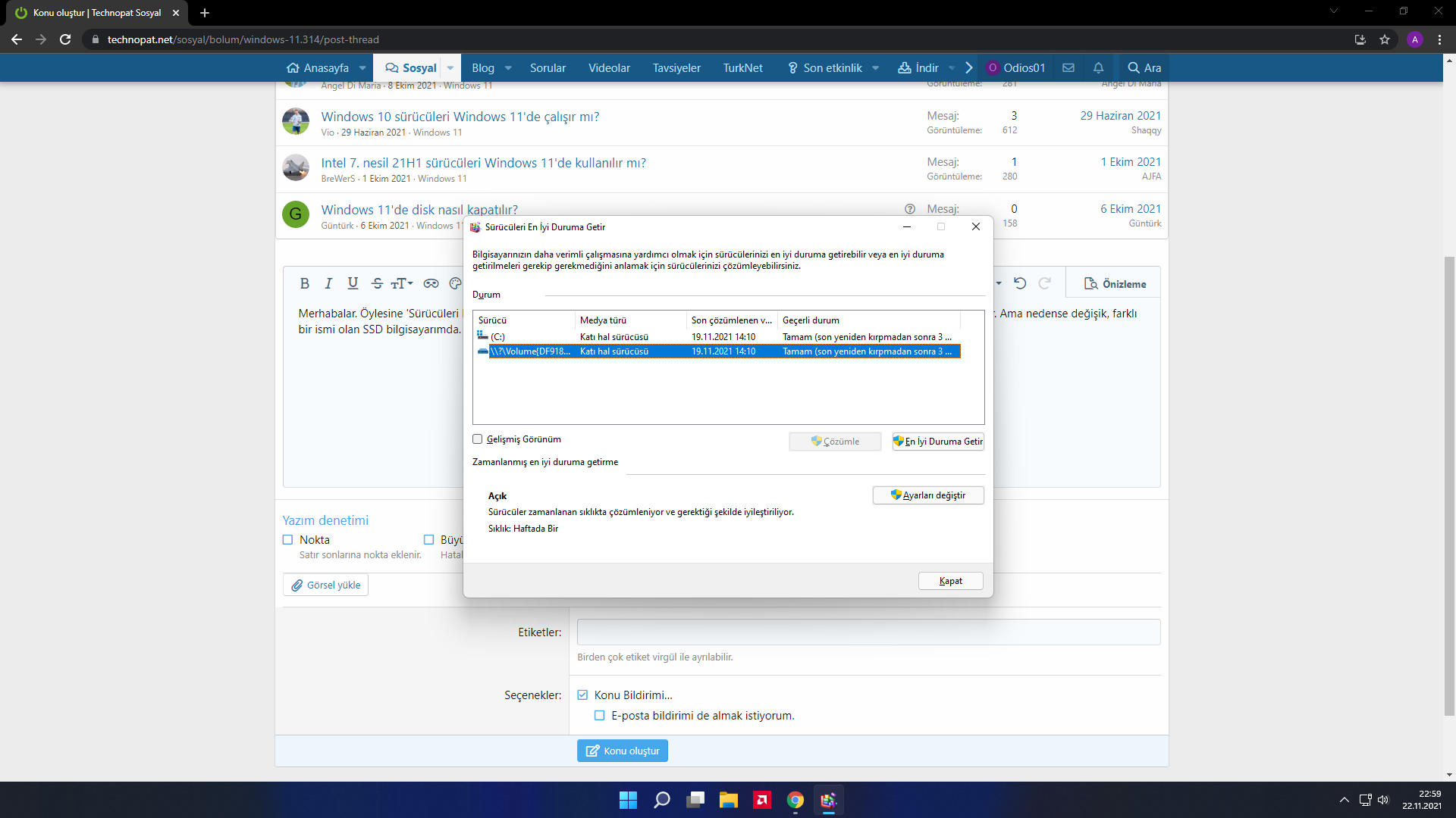 Çözüldü "Sürücüleri En İyi Duruma Getir"de başka bir disk var