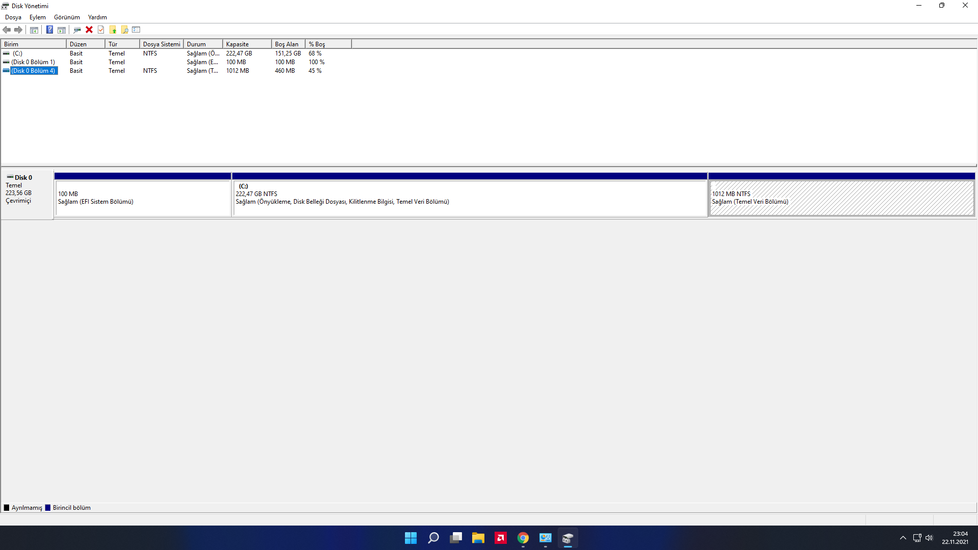 240 GB ancak Dosya Gezgininde 222 GB olarak gözüküyor.