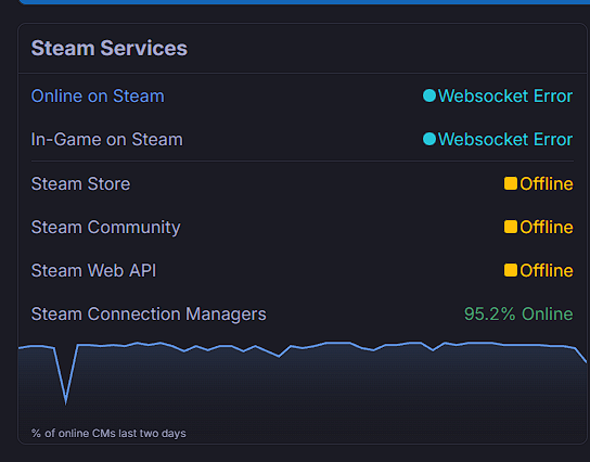 Evet, an itibarıyla Steam sunucuları çöktü. Birkaç cihazdan ve mobil veriden girmeyi denedim, hepsinde aynı sorun var. Steam stats'da da offline olduğu görünüyor ve sayfa görüntülenmesi artmış. Önceki senede de olmuştu böyle, aynı şekilde kış indiriminde. En yakın zamanda düzelmesini bekliyoruz. Şaşırdık mı? Hayır. Ekran görüntüsü 2025-12-24 213943.png