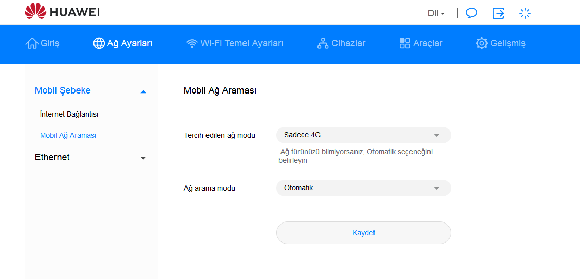 Bende şuan 3gde kullanıyorum ama benim merak ettiğim konu 4.5g de neden böyleBende aynı ürünü kullanıyorum. Bulunduğum bölgede bazen 3G bazen 4G daha iyi performans veriyor. Modem ayarlarından otomatik olan "tercih edilen ağ modunu" 3G - 4G arasında geçiş yaparak hangisi daha iyi performans veriyor bakabilirsin.