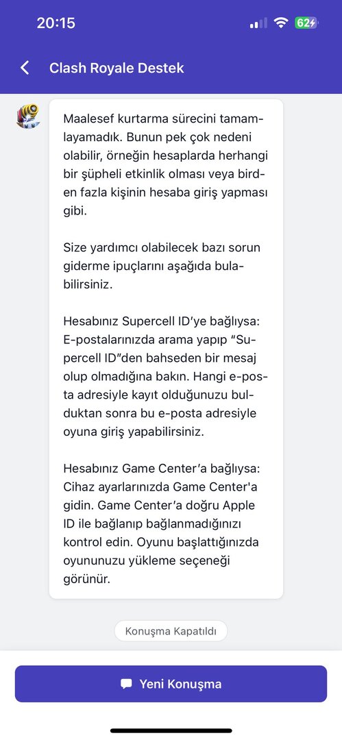 Yukarıda da belirttiğim gibi hesabımı kurtarmak için canlı destek ile iletişime geçmem gerekiyor çünkü Supercell ID'ye bağlı olan e-posta Google tarafından aktif olmadığı için silinmiş durumda. Bu sebepten ötürü canlı destek ile iletişime geçmek istiyorum. Bunun en kolay yolu nedir, nasıl hızlı bir şekilde bot ile uğraşmadan canlı destek ile iletişime geçebilirim? Yardımcı olursanız sevinirim. Teşekkürler.