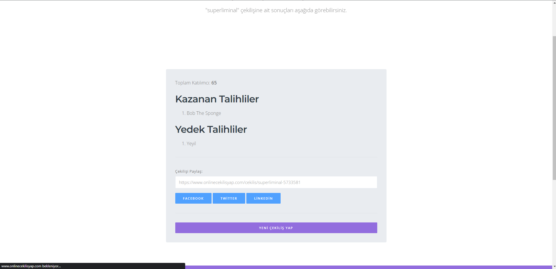 Bugün 23.00'da çekilişi açıklıyorum.