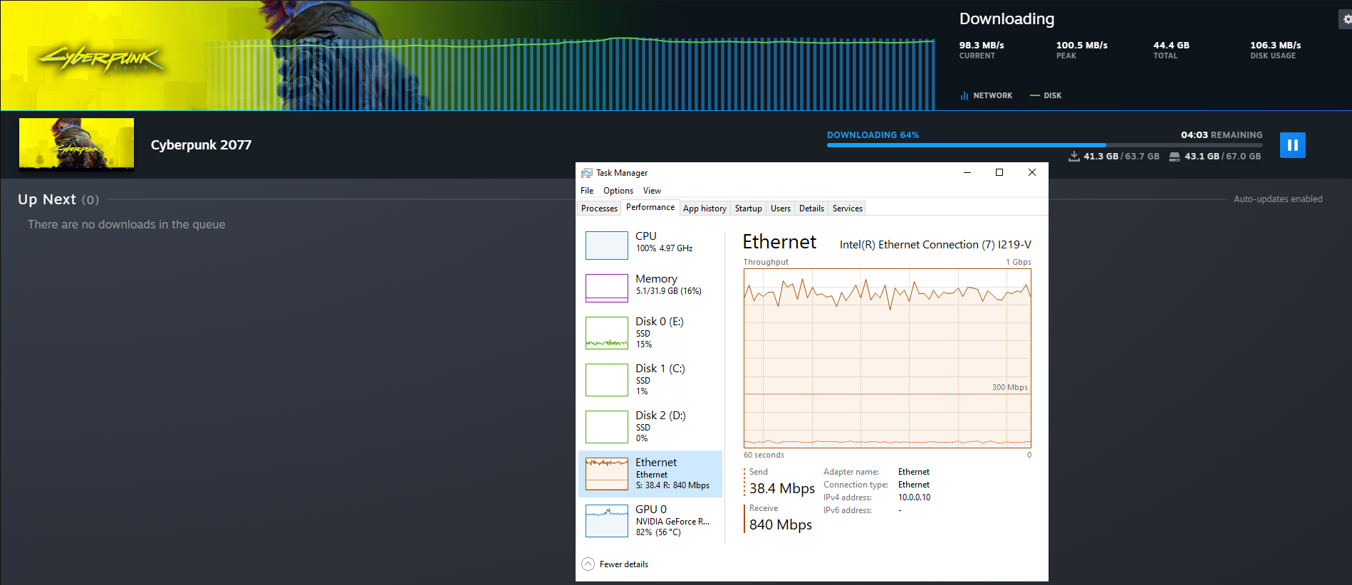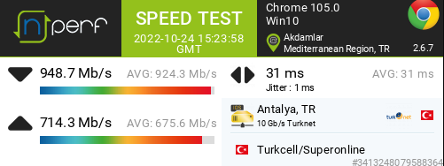 Merhaba Superonline 1Gbit de bu değerler normal midir? 100MB/s üstünü göremedim ama normal şartlarda daha üzerine çıkması gerekmiyor mu? tamamen kullanmayacağını biliyorum ancak 850Mbit de takılı kalıyor sanki maksimum kullanımda 119MB/s kullanıyor sanırım ancak en azından 110MB/s görmeyi bekliyordum. Ubisoft da max 83MB/s Epic de 86MB/s gördüm. Speedtest sonuçlarını da ekledim.