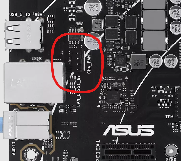 Ethernet ve USB bağlantılarının olduğu kısma yakın şekilde bir tane CHA_FAN portunuz var. Kasa fanı bağlantılarını o portu kullanarak yapabilirsiniz.