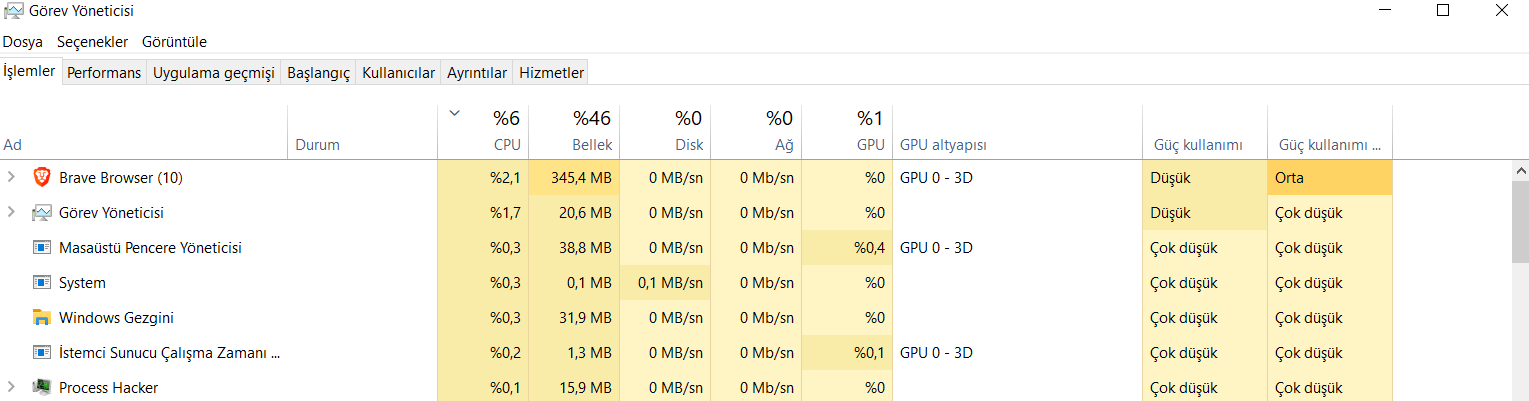 Yaklaşık 3 hafta önce laptop boştayken yoğun bir iş yükü çektiğini hissedip görev yöneticisini açtım. İlk açıldığında CPU kullanımı %95-100 arası gözüktü ve sonra hemen olması gereken seviyeye, %10'un altına düştü. Açar açmaz kullanımı düştüğü için ne SS alabildim ne de güç harcayan yazılımı görebildim.