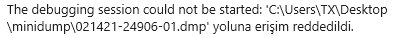 Minidump dosyalarını kendim acmaya calıştıgımda uyarı veriyor, ici bomboş.