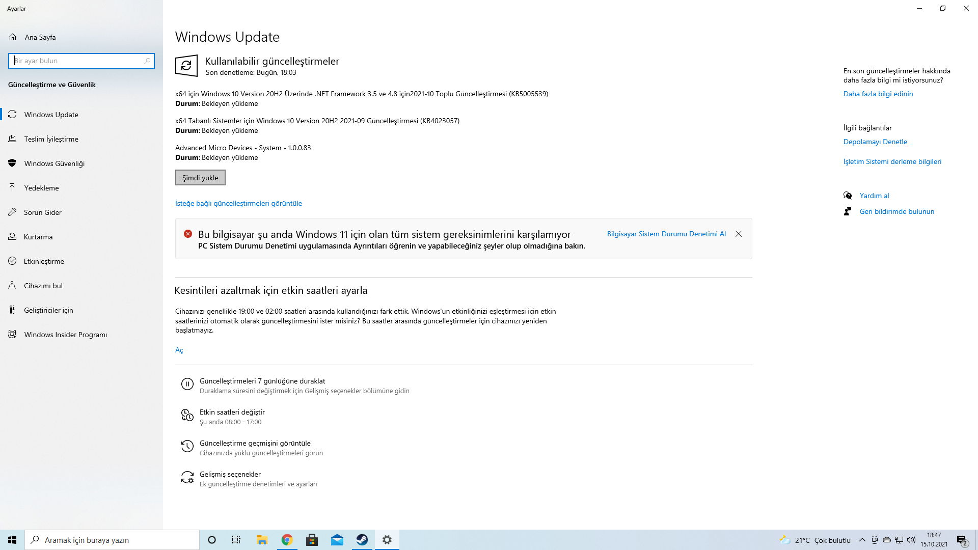 "SYSTEM_THREAD_EXCEPTION_NOT_HANDLED" mavi ekran hatası