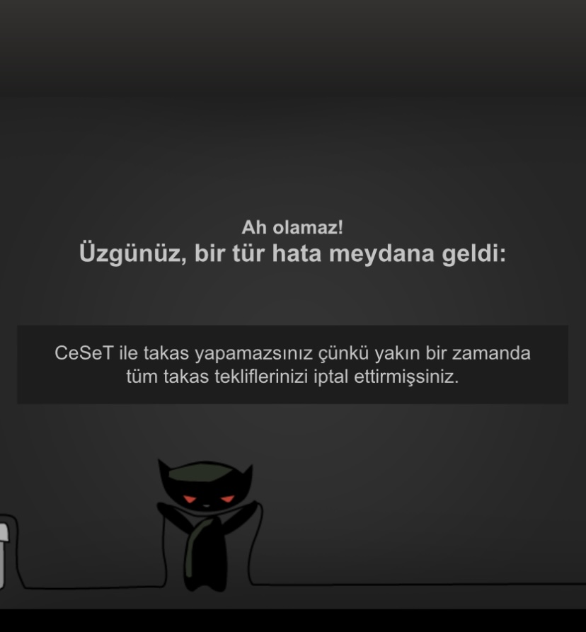 Steam'de bir takası iptal ettiğiniz zaman 7 günlük takas kısıtlaması veriyor, sizde onun uyarısını alıyorsunuz. Eğer Steam Guard yoksa da aynı hatayı almanız bir ihtimal. Ayrıca Steam'de 3 hesabınız var ancak bir hesap gibi de düşünebilirsiniz, birinde VAC yasağı alırsanız 3 hesabınıza da yansıtırlar bilginiz de olsun.