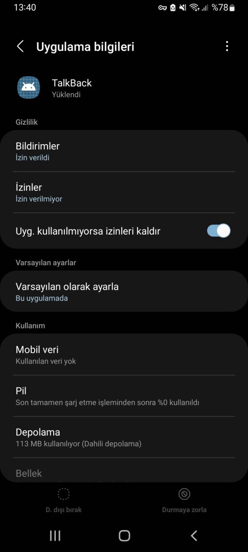 Merhaba. Telefonumda talkback diye bir uygulama gördüm ayarlarda. Bu nedir acaba? Devre dışı bırakamıyorum.