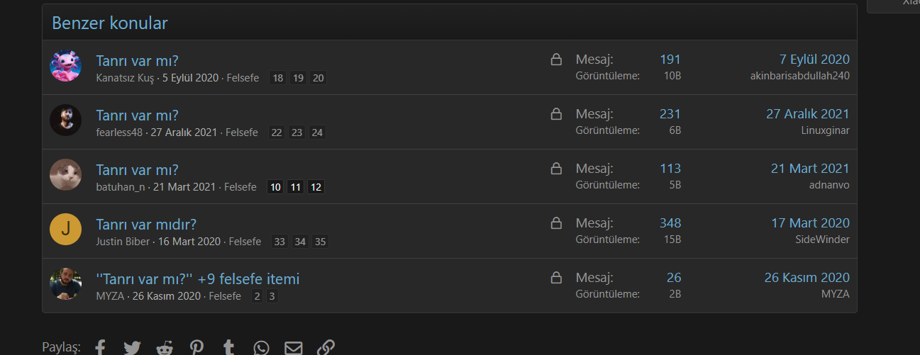 Buna katılmıyorum. İstediğine inansın. İnanma isteği, insanın düşünme eylemi gelişiminden beri var. Ama yeter ki radikal olmasın, varlığını kanıtlayamadığı bir şeyi inandırmaya çalışmasın yeter.Maalesef sizin gibi düşünenlerde cennete gideceğini zannediyor ve 1 tane olan hayatını boşa bu tarz saçma inanışlarla geçirip ölüyorlar. Maalesef gerçek bunlar ne kadar inanmak istemeseniz de. İnsanlar olarak egonuz izin vermiyor olabilir bunlara Evren'e göre çok önemli olduğumuzu zannediyoruz çünkü![]()