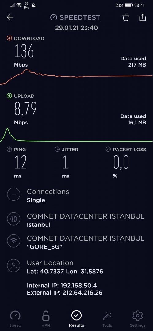- Akşam saatlerinde hep olmasa da nadiren hız düşmeleri oluyor. (FTTH altyapıdan hizmet alanlarda bu gözlemlenmedi.)