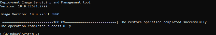 CMD yönetici olarak çalıştırıp DISM /Online /Cleanup-Image /RestoreHealth