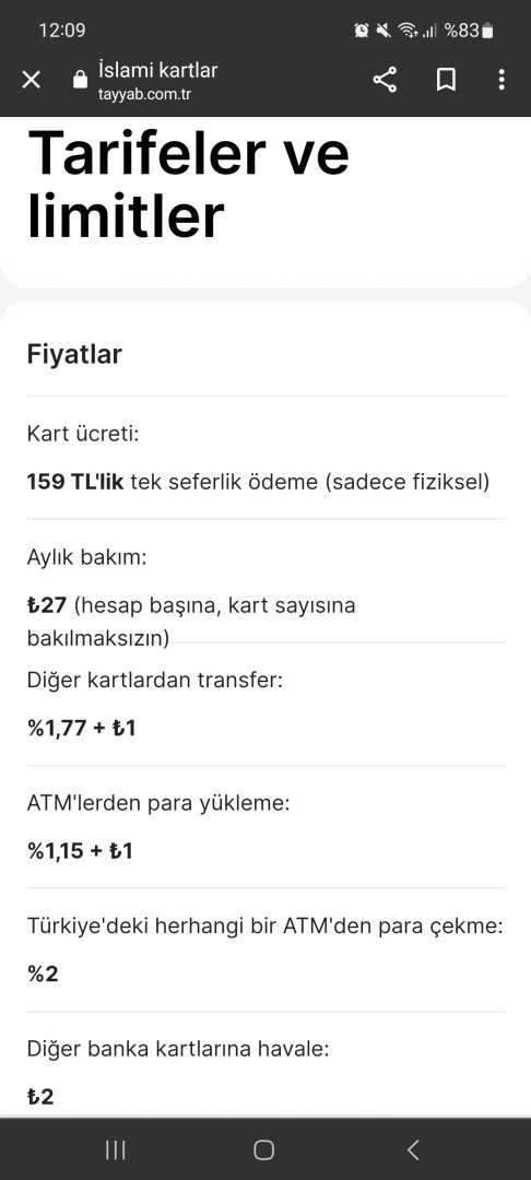 İlk ay 186, sonraki aylar 27₺ aidat ödeyerek helal(!) olan Tayyab(Tayyip) kartına sahip olabilirsiniz. Her ay çekilişle bazı kişileri Umre'ye gönderiyoruz. Ama merak etmeyin, sizi hiçbir zaman yollamayacağız.Hisse için almayı düşündüm sonra tarifelere baktım ve bir kahkaha patlattım.