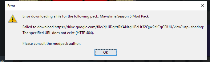 Hatada belirttiği gibi öyle bir URL'nin olmadığını söylüyor. Sanırım bayağı eski bir mod paketi.