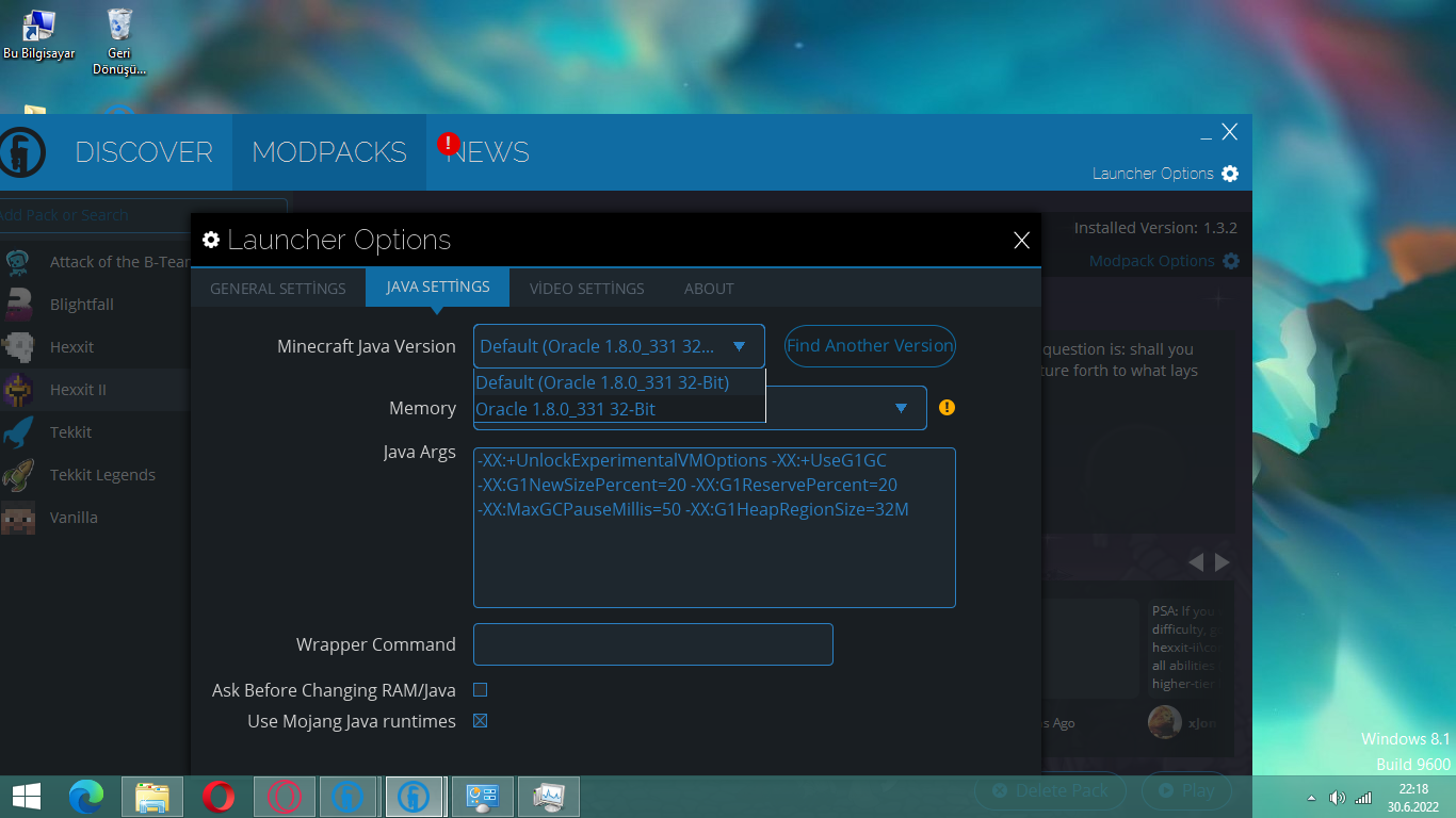 Sanırım sorunu buldum Java'yı 64 bit indirdim neden 32 bit gözüküyor?