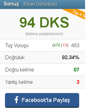 Bunu bir ara yapıp SS almıştım, rekorum 99'du sanırım.