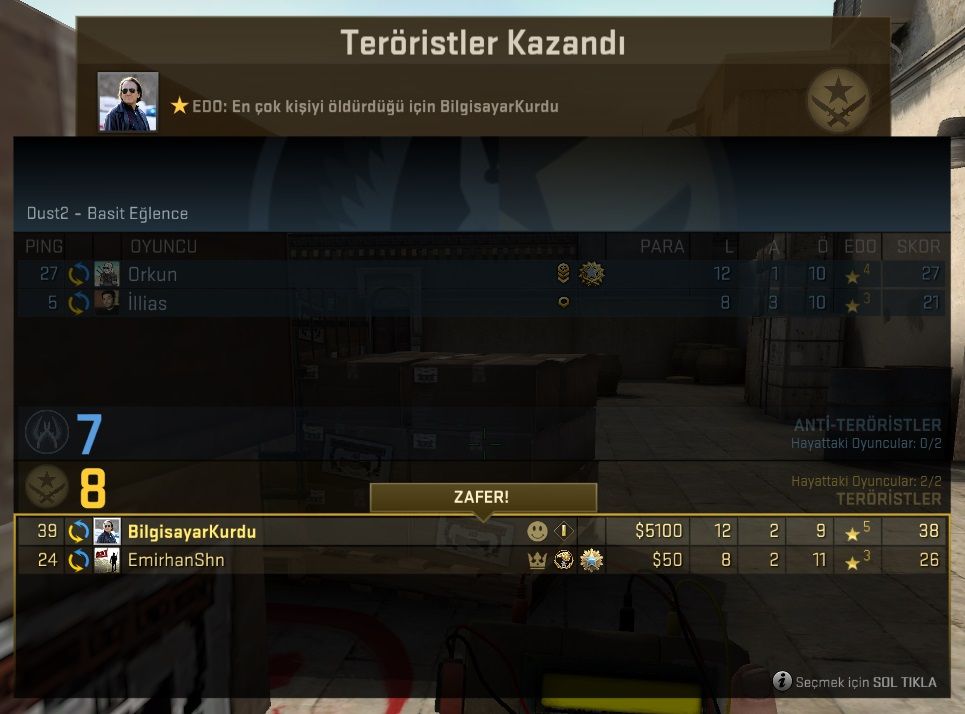 Mevlana ile ayrı bir eğlenceli:D Bu arada ligine yani Rank'ına göre iyi bir oyuncusun ben de seni tebrik ediyorum, kısa zaman da daha yüksek yerlere geliceğinden şüphem yok eh tabii Rıza Baba'da arada fısıldıyor taktik vermiyor değil. Beni eklemek isteyenlere Steam Linkimi verebilirim Steam Community :: Orkun.
