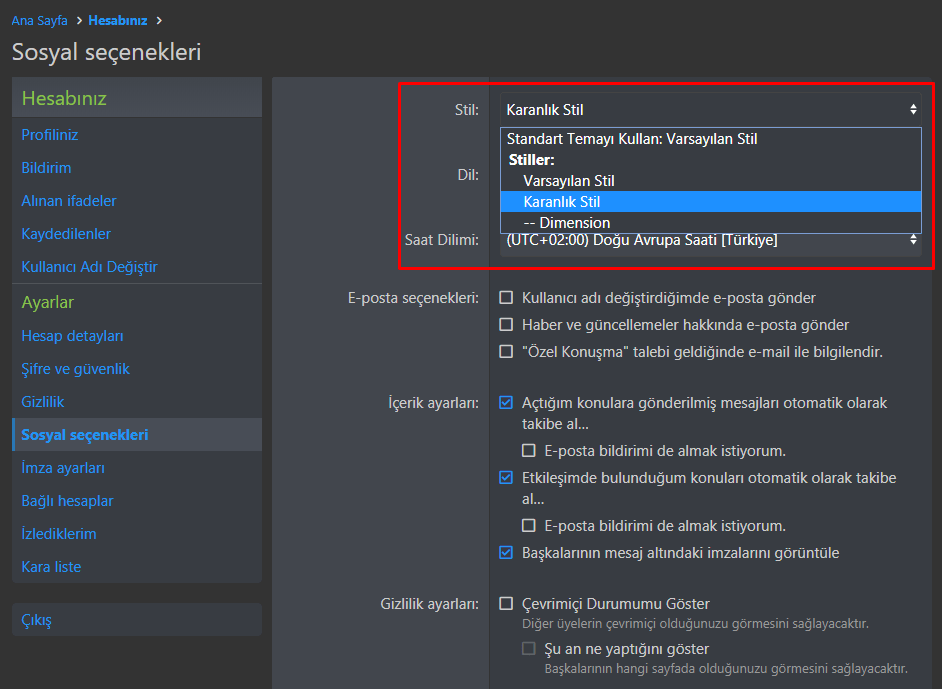 @Agnes Tema hoşunuza gitmiyorsa, Sosyal seçeneklerinden Dimension ve Karanlık temayı seçebilirsiniz.