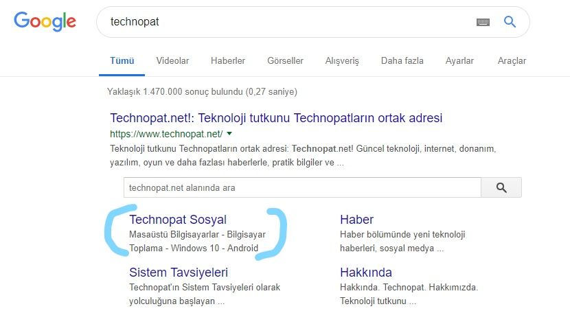 Genelde Altbaşlık olarak "sosyal" linki çıkıyor. Çıkmadığı zamanda (yukarıdaki gibi) aramayı "Technopat sosyal" olarak güncelliyorum öyle giriyorum.