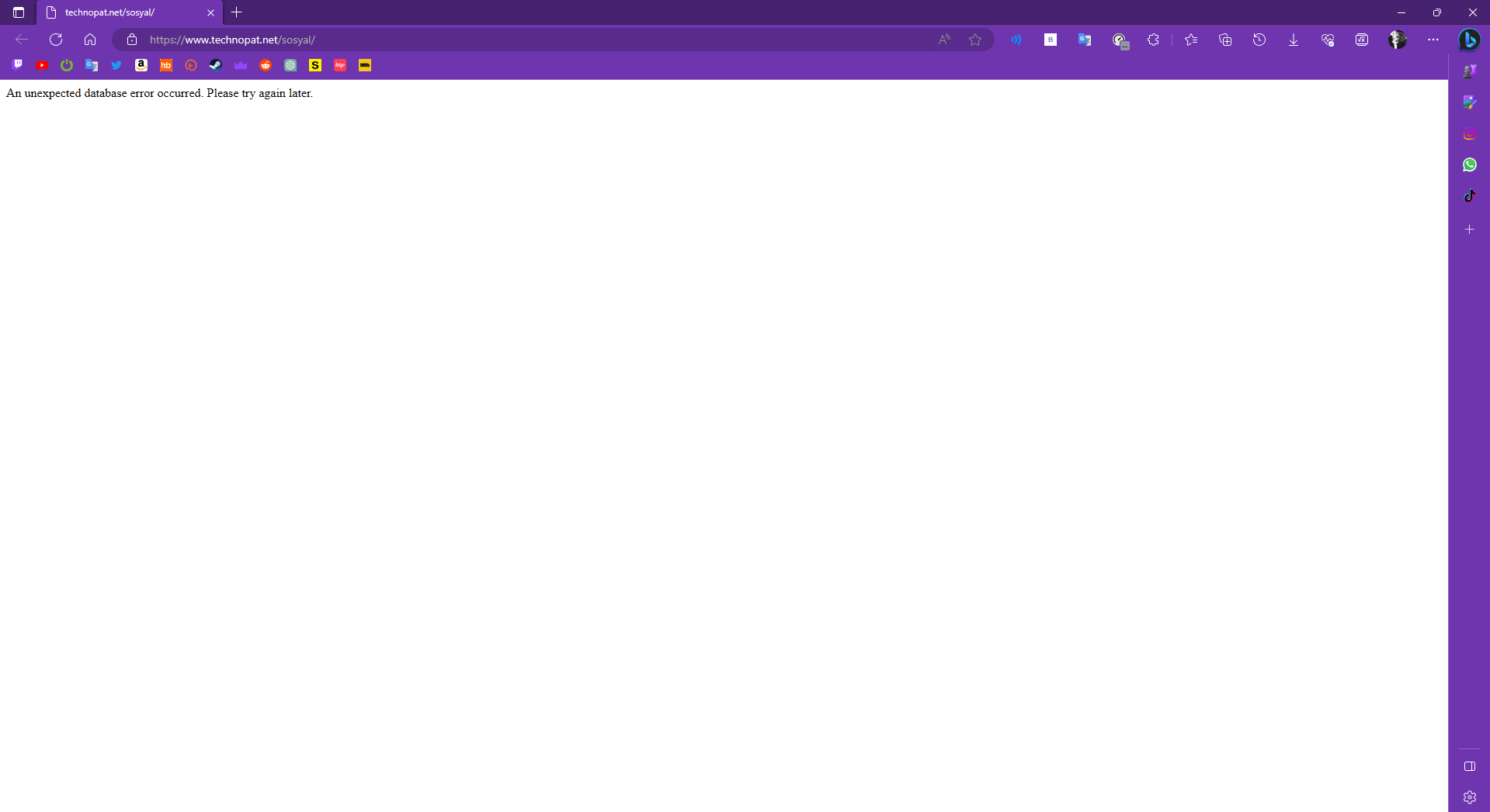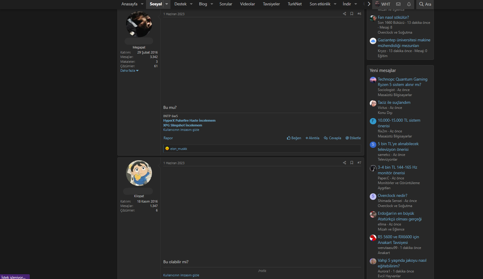 Şu anda sosyal simgesine basınca hata veriyor site açılmıyor, sosyale açılmış bir konu üzerinde giriyorum. Genel olarak açılan konular geç açılıyor yüklenmesi uzun sürüyor yani. Mesajlarda YouTube videosu var ise ekstra geç açılıyor. Mesajlar falan geliyor ama YouTube linki açılması 3-4 dakika falan sürüyor. Gizliden veya başka tarayıcıdan hesap açmadan girince sorun olmuyor, direk açılıyor. Saçma saçma sorunlar var çözemedim. Edge ve Opera kullanıyorum. 24Mbps.