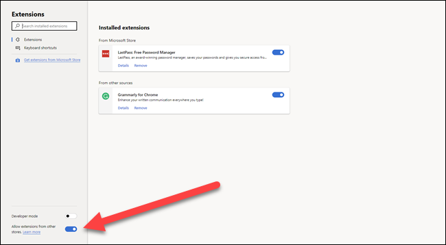 Açılan sayfanın sol altında, "Diğer mağazalardaki eklentilere izin ver" seçeneğini aktif edin.