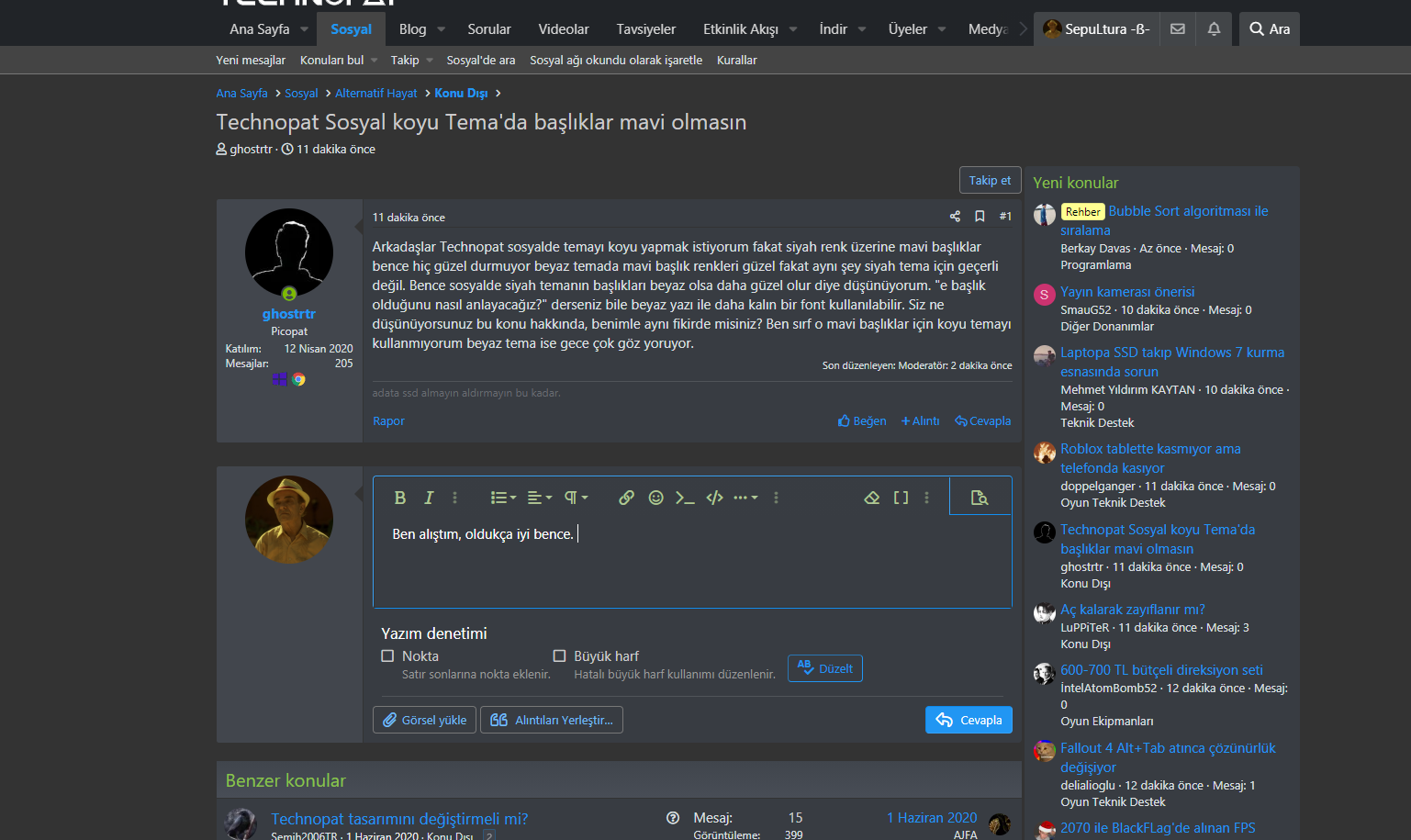 Şu olsun bu olsuna gerek yok, herkes kendi özelleştirebilsin bence. Ayrıca koyu mod da tam siyah olmalı.