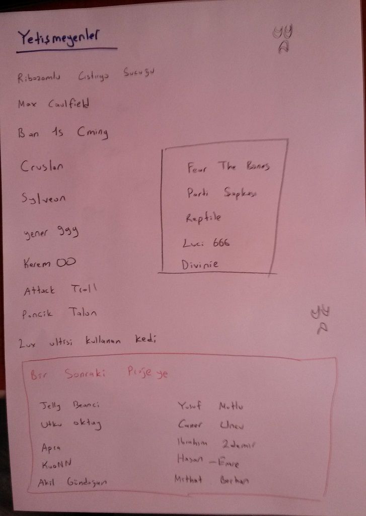 Olmayan arkadaşlar var en altta onları yazdım. Gelecek projelerde sizlere de yer vereceğim. Eğer projelerde olmak istemeyen veya olmak isteyen kişiler varsa şimdiden belirtirseniz iyi olur