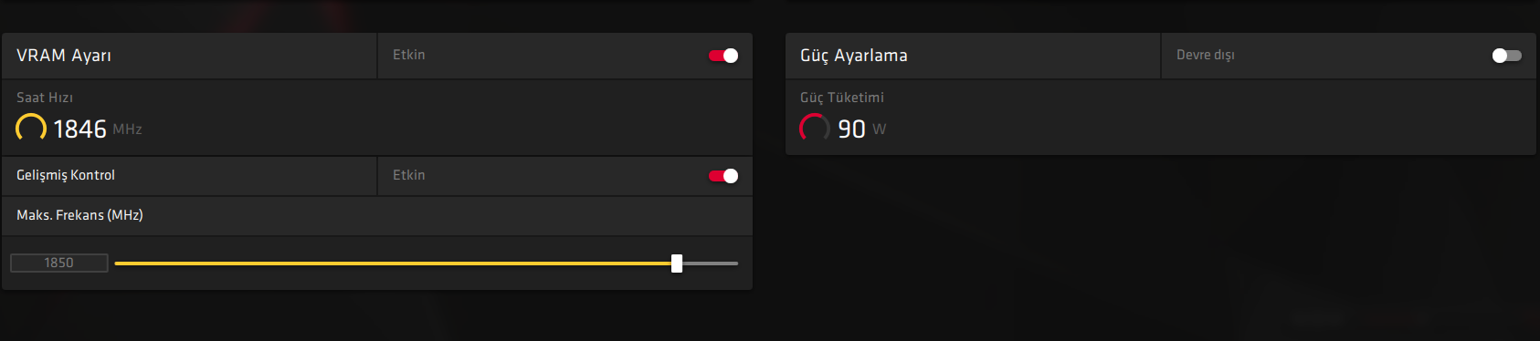 Ben RX 5600XT MSI Mech modeli kullanıyorum. 1 aydır kazım yapiyorum. Ayarlarım bu şekilde.