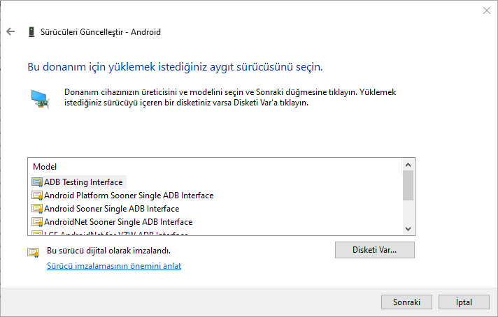 Bu ikisi telefon ile ilgili büyük ihtimalle.Team Viewer kullanmıyorum. Bir de şöyle bir yol deneyelim. Bilgisayarımdaki sürücülere göz at dedikten sonra. Bilgisayarımdaki kullanılabilir sürücülerden seçmeme izin veri seçin. Daha sonra disketim var deyin oradan en son indirdiğiniz sürücünün konumunu seçin.