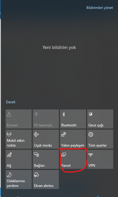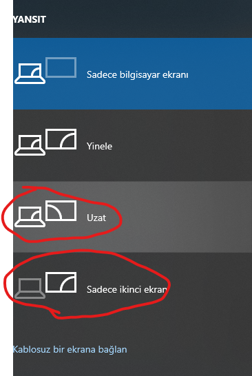 yine aynı bir şey değişmediBilgisayardan yansıt yapın sadece ikinci ekran ya da uzat kullanabilirsin ekran görüntülerini koyuyorum.
