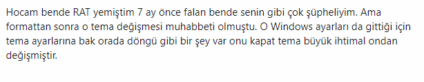 Hocam bende formattan 1-2 gün sonra güncelleme geldi ve Microsoft uygulamalarının ssimgeleri dahil olmak üzere bayağı bir şey güncellendi. Arama simgesi vs. bu kadar RAT yediğinizden şüphe ediyorsanız format atın geçin.