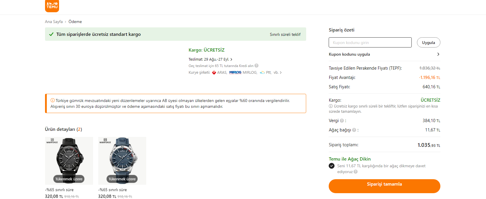 Temu'dan aşağıdaki saatleri (Üç tane ayrı renk. Linkleri aynı olduğu için ayıramadım.) almayı düşünüyorum. Sanırım üçünü aynı anda alamıyorum. İki tane veya bir tanesini sipariş etsem gümrükte kalır mı?