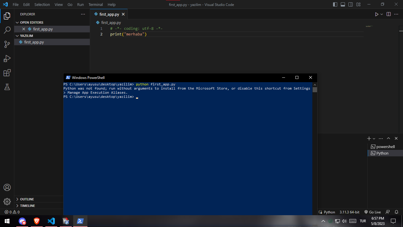 Orada da denedim. Daha yeni başladım BTK'nın kursundan izliyorum. O yüzden kullanıyordum PowerShell'i.