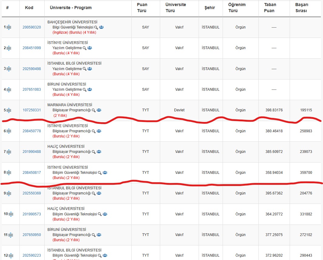 Bu şartlar altında tercih listem nasıl olmuş değerlendirir misiniz? İlk 5 üniversite kısmen hayal, 6-7-8 tutmasını istediklerim, 9'dan sonrası da son çare dediklerim. Muhtemelen İstinye Üniversitesi 2 yıllık Bilişim Güvenliği Teknolojileri düşecek ama nasip.