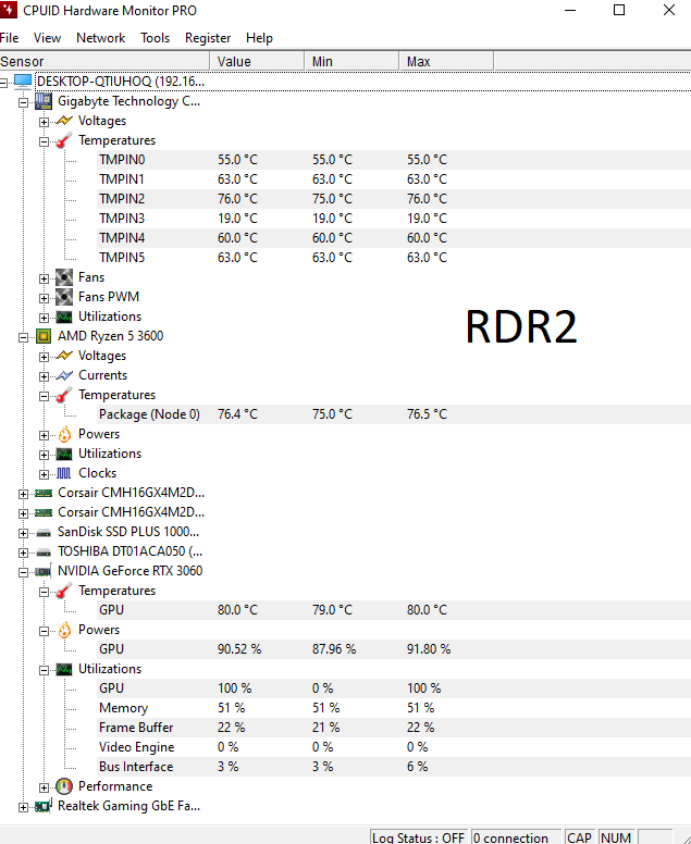 Ryzen 5 3600 kullanıyorum yaklaşık 1,5 yıldır. Kasayı hiç açmadım bile. PC boştayken, CS oynarken ve RDR2 oynarken sıcaklık değerlerini görsellere ekledim.